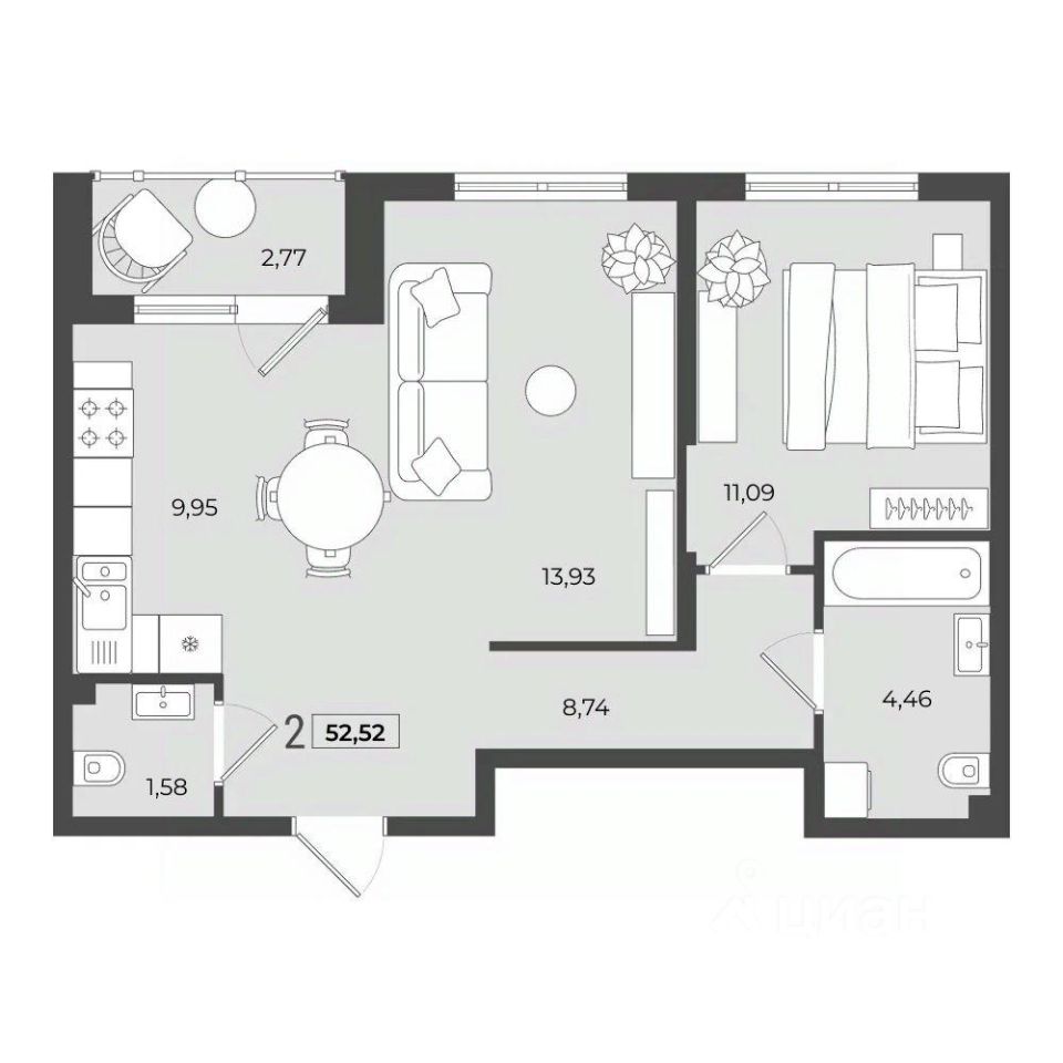 Количество комнат: 2