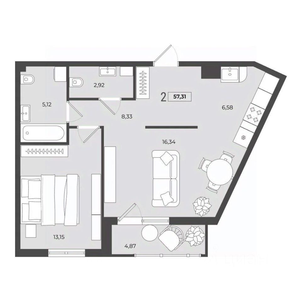 Количество комнат: 2