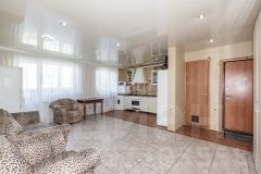 Современный дизайн и качество: натяжные потолки по всему дому, стеклопакеты на окнах, теплый пол с подогревом из керамогранита — комфорт в любое время года.
