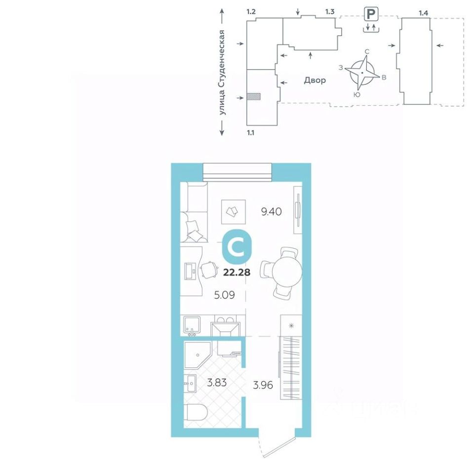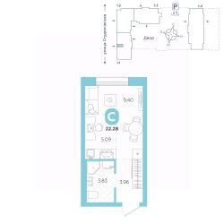 площадь квартиры - 22,28 кв.м