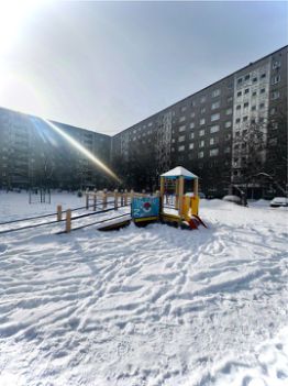Тихий просторный двор, летом очень зеленый, оборудованный детской и спортивной площадками. Предусмотрены открытые парковочные места.