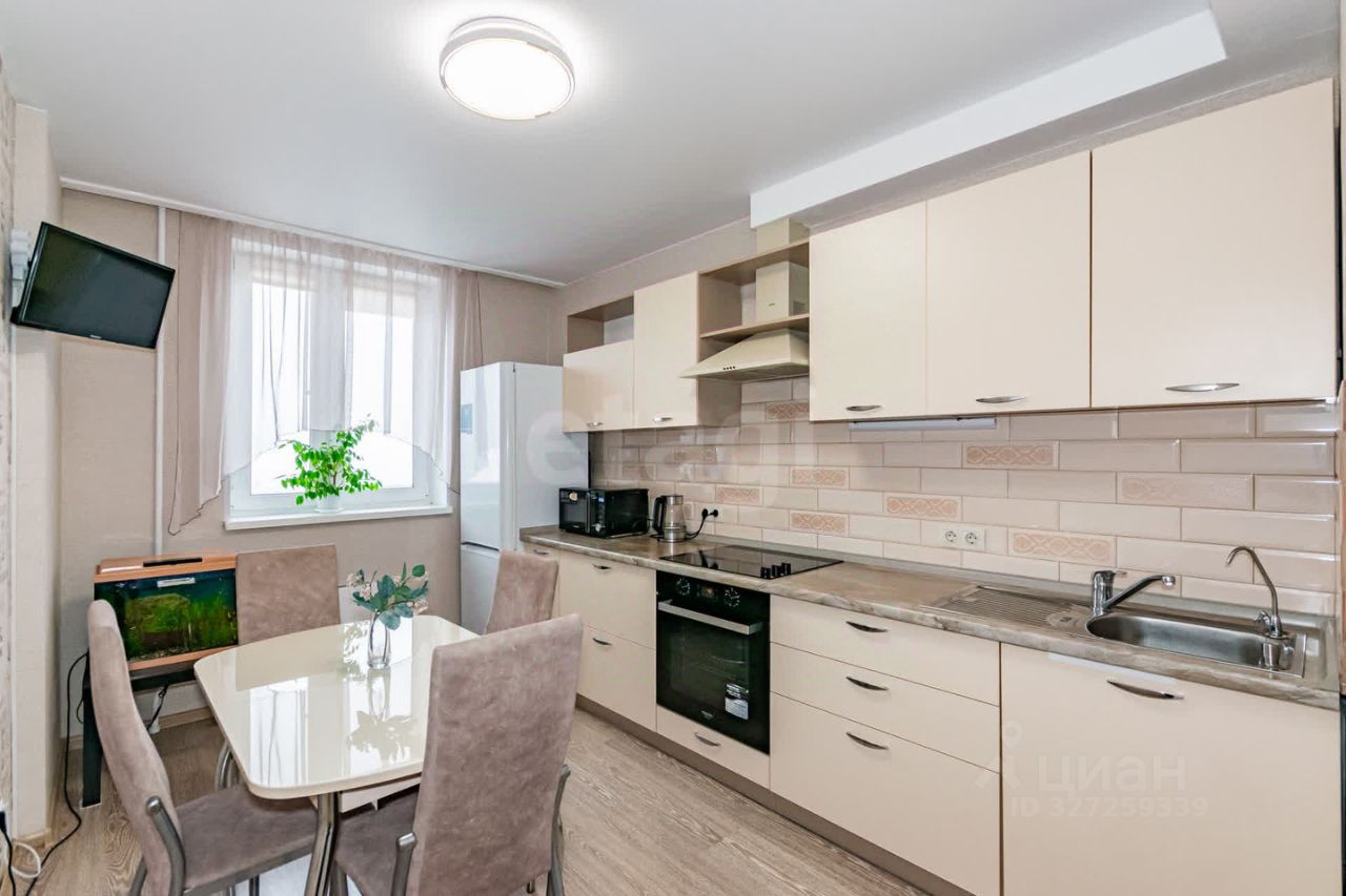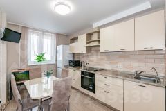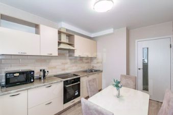 На кухне остаётся кухонный гарнитур со встроенной бытовой техникой (духовой шкаф, варочная поверхность, вытяжка).