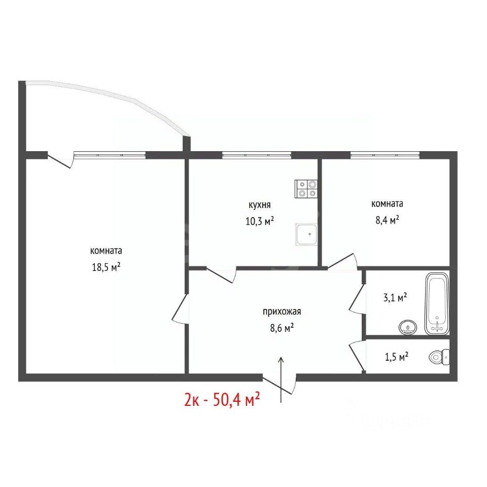 Практичная планировка: кухня-гостиная, две изолированные комнаты-спальни, раздельный санузел, лоджия.