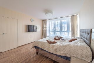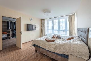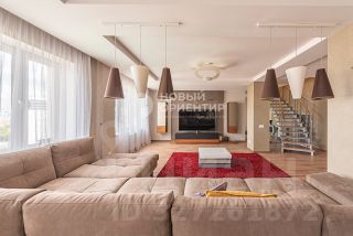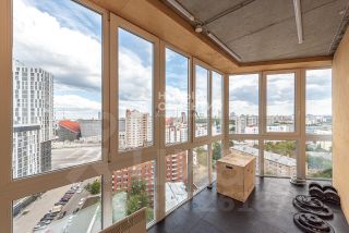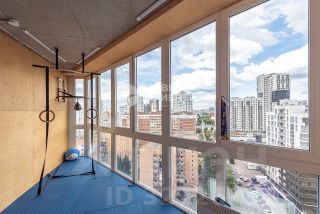 На втором этаже три спальных комнаты (одна с просторной гардеробной с окном) и санузел с ванной. В квартире 6 просторных лоджий, две из которых оборудованы для спортивных тренировок.