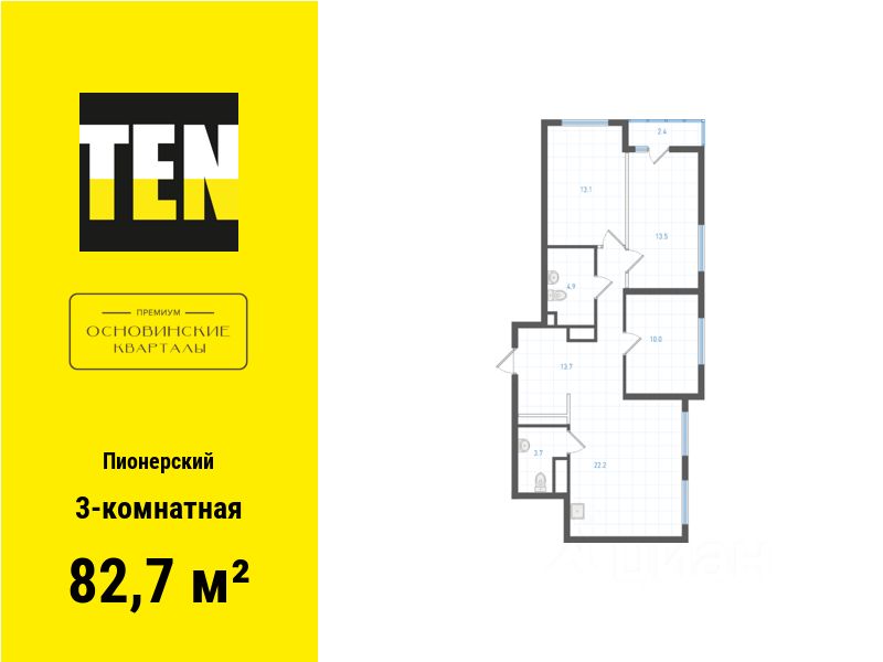 Квартира в ЖК "ОК: Премиум" в Пионерском микрорайоне от застройщика TEN девелопмент! Ключи во 2 квартале 2027 года.