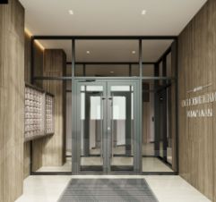 Входные группы прозрачные и расположены на уровне тротуара, чтобы было удобно завозить коляску или велосипед. Дизайн холлов выполнен в классическом выдержанном стиле. Для удобства жителей здесь есть мягкие зоны, колясочная и лапомойка, для автолюбителей - подземный паркинг.