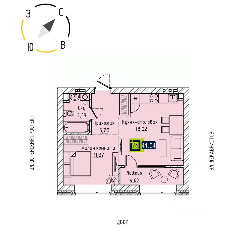 Общая площадь41,54 м²