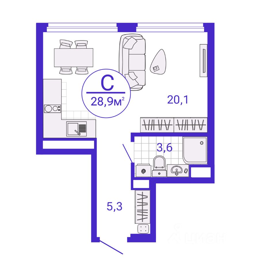 Общая площадь28,94 м²