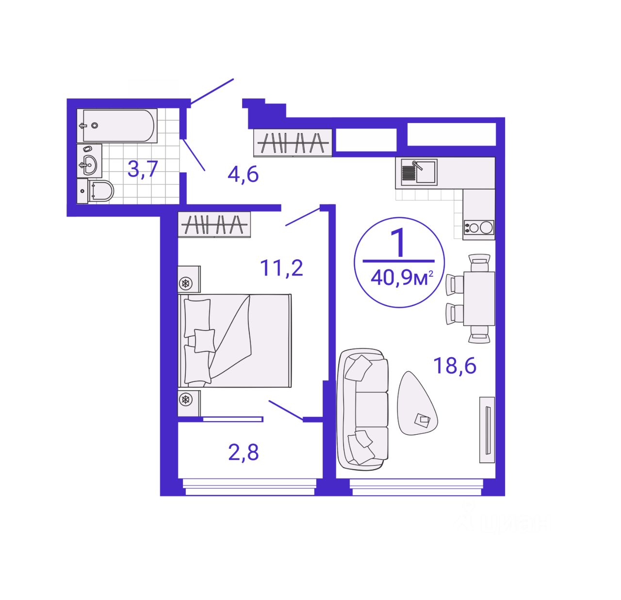 Общая площадь39,53 м²