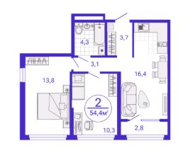 Общая площадь52,99 м²