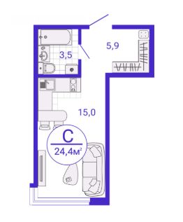 Общая площадь24,38 м²