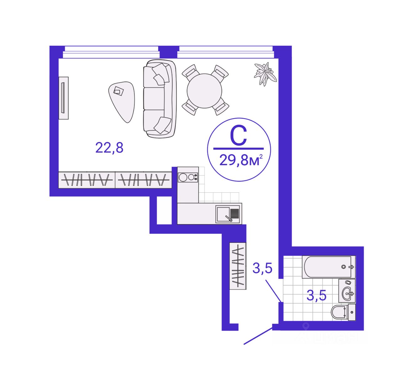 Общая площадь29,77 м²