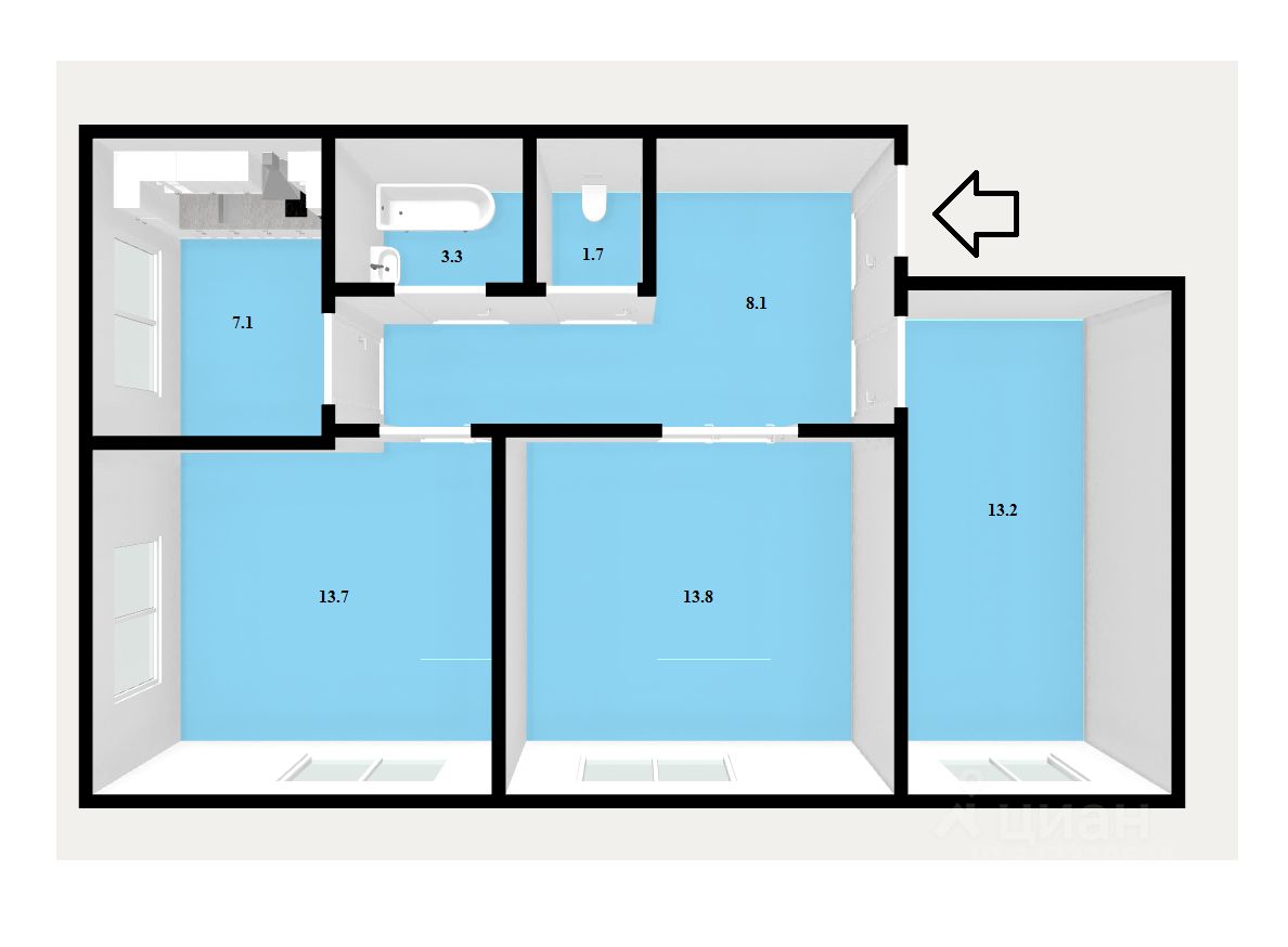 В квартире выполнен качественный ремонт. Планировка квартиры удобная и функциональная, что позволяет рационально использовать пространство для проживания.