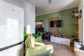 КВАРТИРА: Полностью укомплектована мебелью и техникой. Всё что нужно для комфортного проживания( система хранения, спальные места, импровизированная кухня гостиная). Комната разделена перегородкой,это позволило изолировать спальное место. Кухонный гарнитур с встроенной техникой:варочная панель, духовой шкаф),холодильник. В санузле отделка керамогранит. Вид из окна отельный бонус.