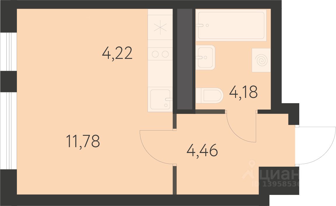 Общая площадь24,4 м²
