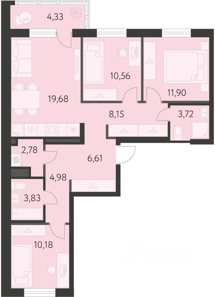 Продается 3-комнатная квартира площадью 84.2 кв.м. от девелопера "Академический" в жилом квартале "Первый Академ". Срок сдачи дома в 2028 году. Выгоды и скидка напрямую от застройщика.