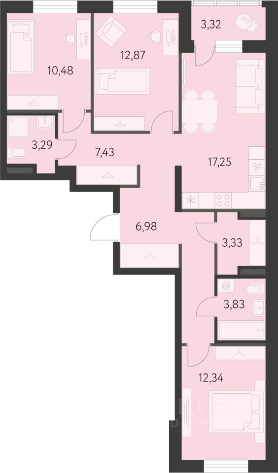 Продается 3-комнатная квартира площадью 84.5 кв.м. от девелопера "Академический" в жилом квартале "Первый Академ". Срок сдачи дома в 2028 году. Выгоды и скидка напрямую от застройщика.