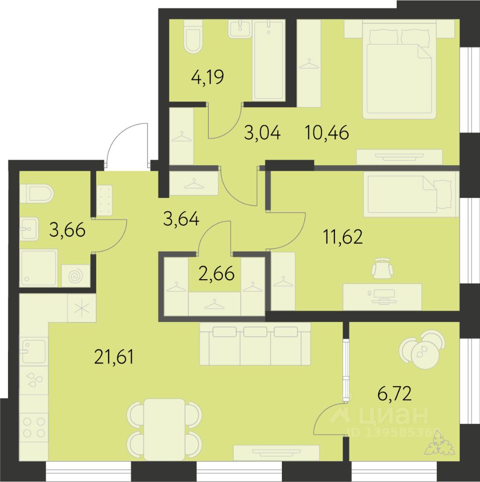 Продается 2-комнатная квартира площадью 67.61 кв.м. от девелопера "Академический" в жилом квартале "Первый Академ". Срок сдачи дома в 2028 году. Выгоды и скидка напрямую от застройщика.