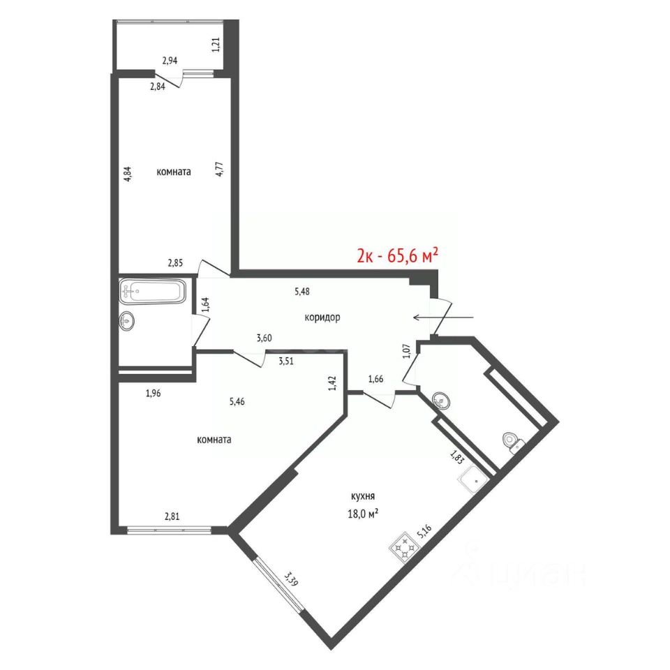 В продаже просторная светлая двухкомнатная квартира с евро-планировкой.
