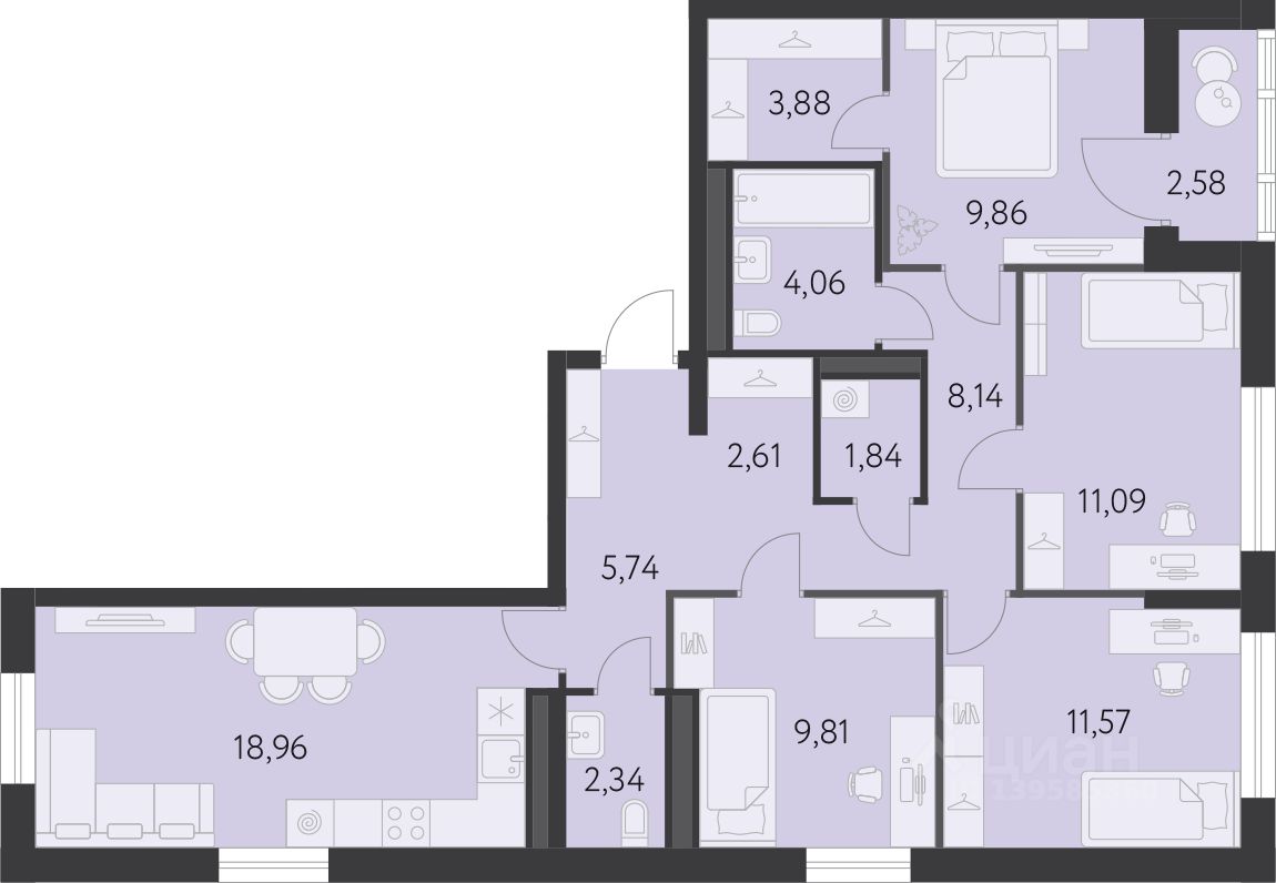 Общая площадь91,19 м²