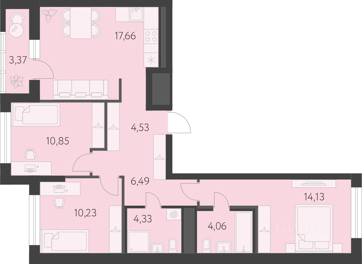 Общая площадь73,97 м²