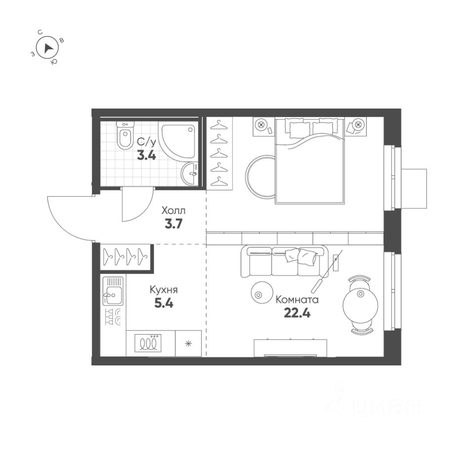 Общая площадь34,9 м²