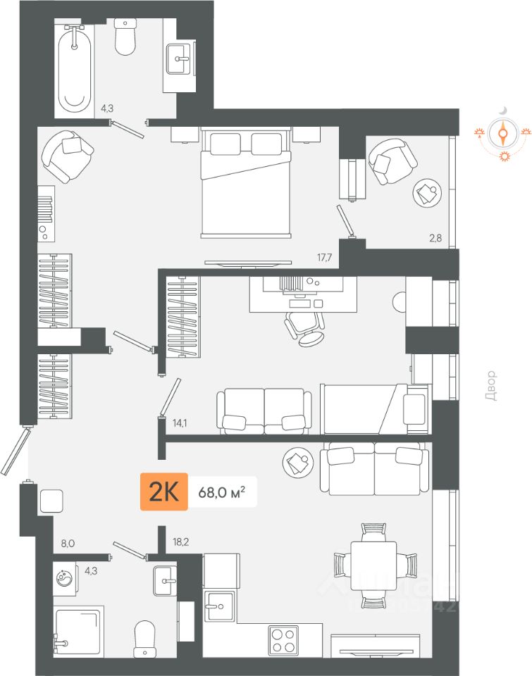 Продаётся 2-комнатная квартира в строящемся доме (3 очередь Секции 1-2), срок сдачи: III-кв. 2026, общей площадью 67.98 кв.м., на 3 этаже. Новый жилой комплекс "Микрорайон Zori" от застройщика "СЗ Экологика" расположен по адресу: Свердловская область, Берёзовский городской округ.