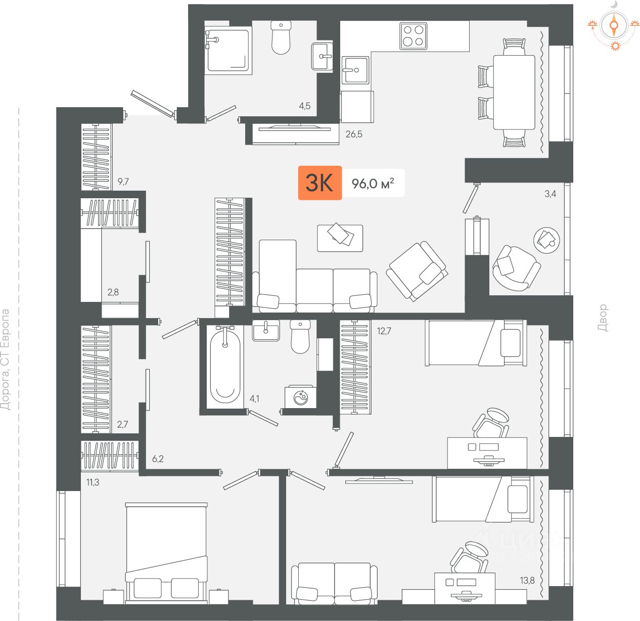 Продаётся 3-комнатная квартира в строящемся доме (3 очередь Секции 1-2), срок сдачи: III-кв. 2026, общей площадью 96.01 кв.м., на 8 этаже. Новый жилой комплекс "Микрорайон Zori" от застройщика "СЗ Экологика" расположен по адресу: Свердловская область, Берёзовский городской округ.