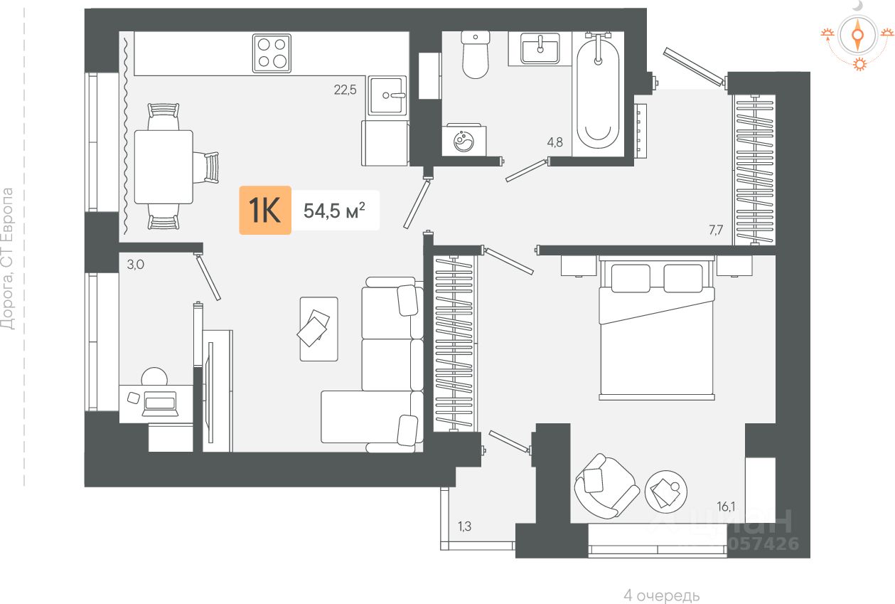Продаётся 1-комнатная квартира в строящемся доме (3 очередь Секции 1-2), срок сдачи: III-кв. 2026, общей площадью 54.49 кв.м., на 8 этаже. Новый жилой комплекс "Микрорайон Zori" от застройщика "СЗ Экологика" расположен по адресу: Свердловская область, Берёзовский городской округ.
