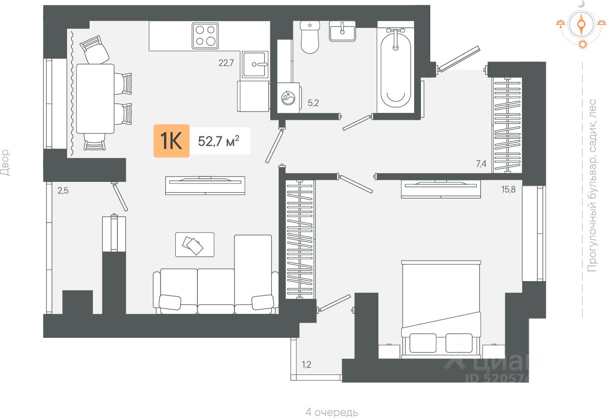 Продаётся 1-комнатная квартира в строящемся доме (3 очередь Секции 1-2), срок сдачи: III-кв. 2026, общей площадью 52.74 кв.м., на 2 этаже. Новый жилой комплекс "Микрорайон Zori" от застройщика "СЗ Экологика" расположен по адресу: Свердловская область, Берёзовский городской округ.