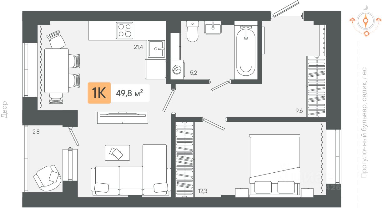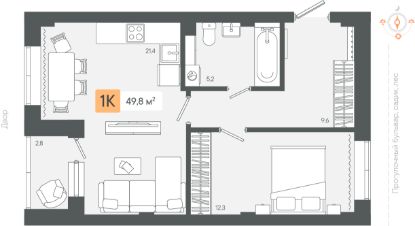 Продаётся 1-комнатная квартира в строящемся доме (3 очередь Секции 1-2), срок сдачи: III-кв. 2026, общей площадью 49.81 кв.м., на 2 этаже. Новый жилой комплекс "Микрорайон Zori" от застройщика "СЗ Экологика" расположен по адресу: Свердловская область, Берёзовский городской округ.