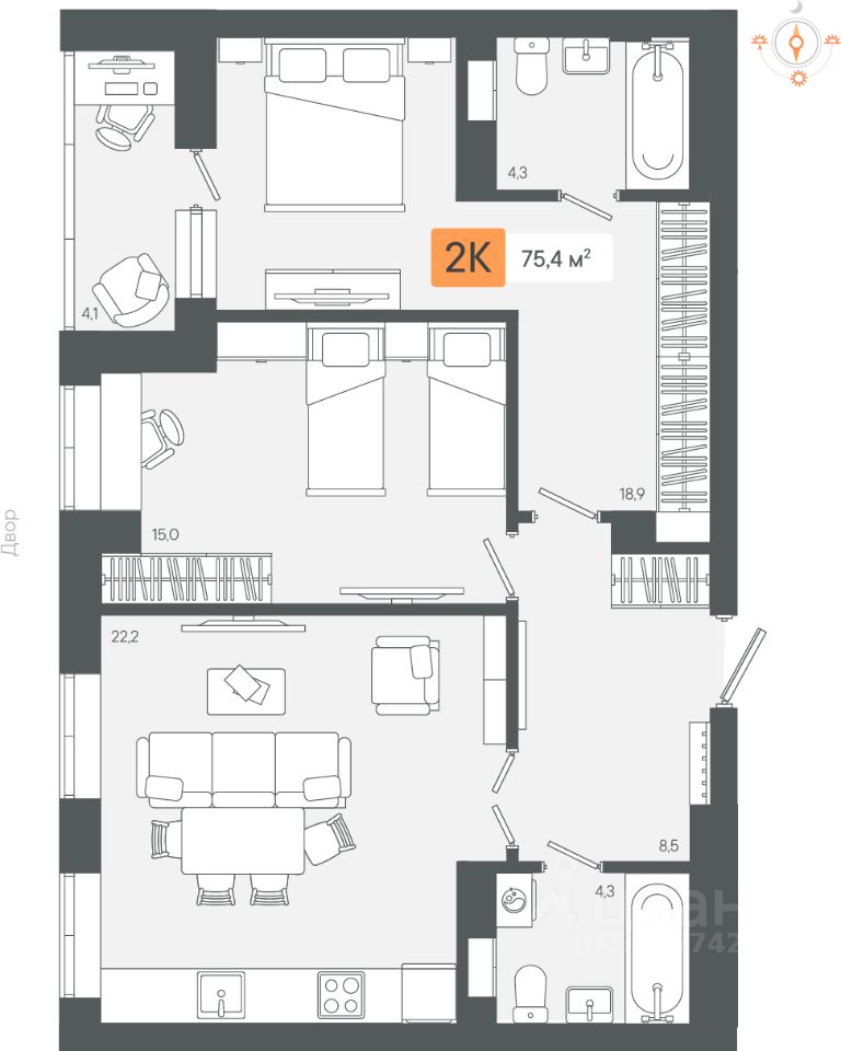 Продаётся 2-комнатная квартира в строящемся доме (3 очередь Секции 1-2), срок сдачи: III-кв. 2026, общей площадью 75.35 кв.м., на 6 этаже. Новый жилой комплекс "Микрорайон Zori" от застройщика "СЗ Экологика" расположен по адресу: Свердловская область, Берёзовский городской округ.