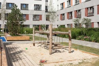 Между собой кварталы соединены широким пешеходным бульваром с игровыми и спортивными площадками, деревьями и кустарниками, привезенными из европейских питомников. Всего более 30 видов растений.