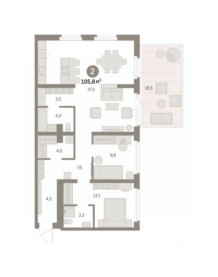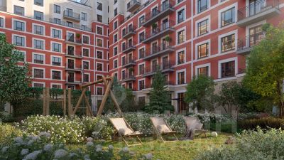 Квартира с кухней-гостиной и двумя спальнями в районе Шишимская горка. Особенности планировки: вид во двор, гардеробная, мастер-спальня, окна в пол, панорамное остекление, постирочная, потолки 3 м и выше, предчистовая отделка, рабочий кабинет, стартовая цена, терраса.