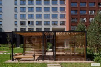 Концепцию благоустройства архитекторы построили на принципах скандинавского натурализма, сочетающего в себе функциональность, простоту и сдержанность. Двор дома — "Каньон", это крупный парк, который связывает все очереди строительства и располагается на рельефе с перепадом до 40 метров. Каньон представляет собой каскад ландшафтных зон, связанных рампами и лестницами, которые зигзагом поднимаются в сторону горы Уктус. Стилистически и идеологически ландшафт выполнен в скандинавском стиле. #26EvV0
