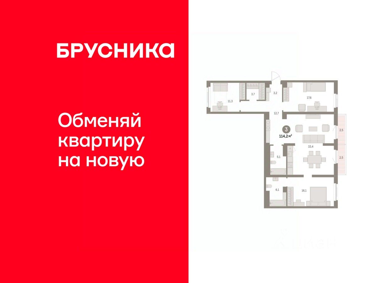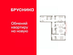 Квартира с кухней-гостиной и тремя спальнями в районе Шишимская горка. Особенности планировки: балкон, вид во двор, гардеробная, мастер-спальня, окна на две стороны, предчистовая отделка, разнесённые спальни, стартовая цена.