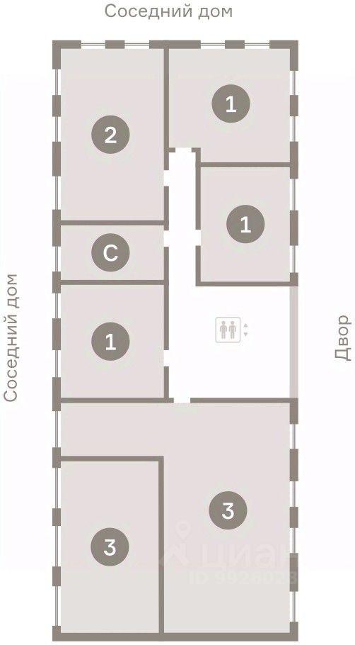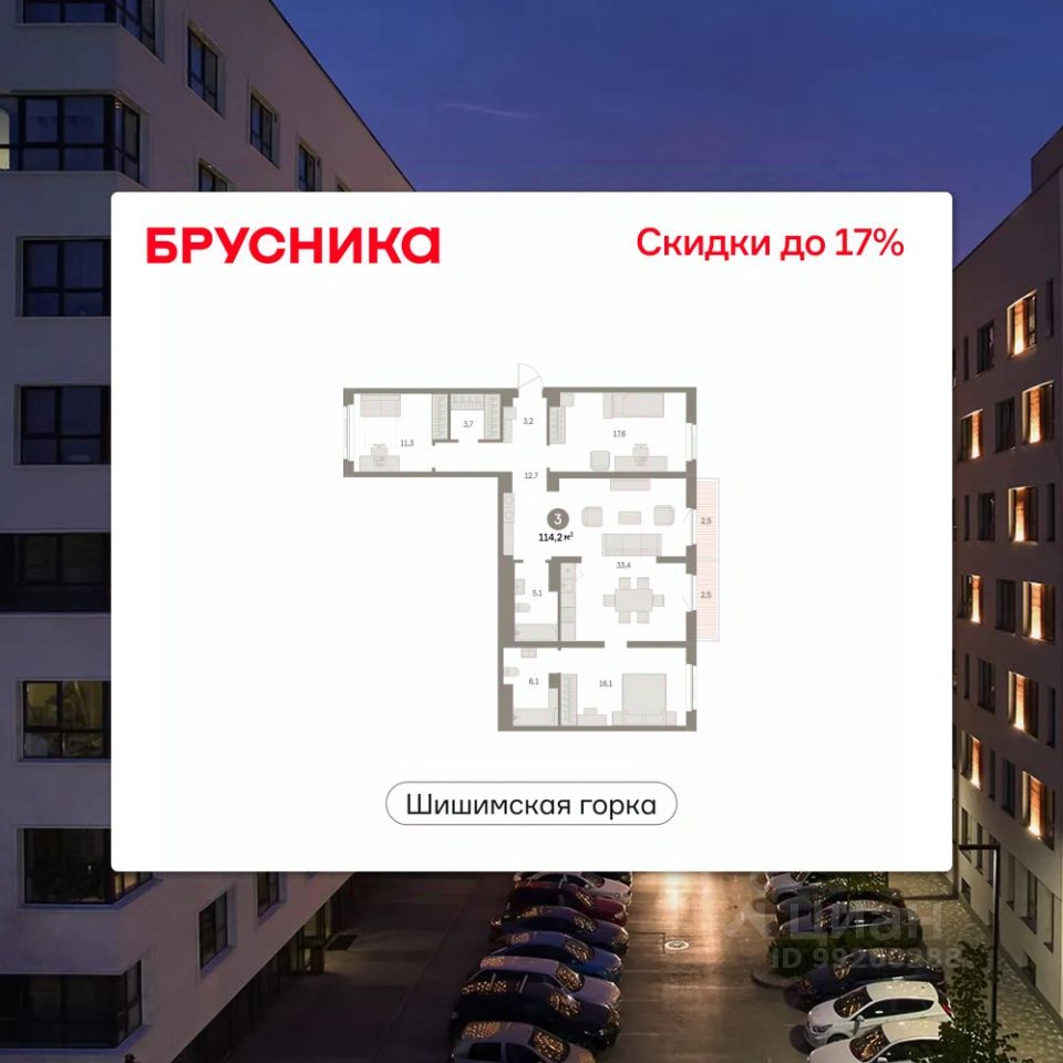 Квартира с кухней-гостиной и тремя спальнями в районе Шишимская горка. Особенности планировки: балкон, вид во двор, гардеробная, мастер-спальня, окна на две стороны, предчистовая отделка, разнесённые спальни.