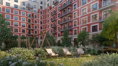 Между собой кварталы соединены широким пешеходным бульваром с игровыми и спортивными площадками, деревьями и кустарниками, привезенными из европейских питомников. Всего более 30 видов растений.