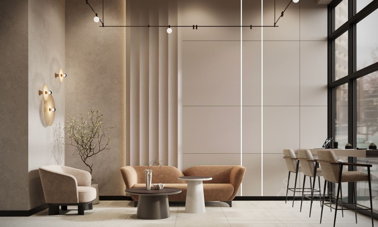 Входные группы прозрачные и сквозные, расположены на уровне тротуара, чтобы было удобно завозить коляску или велосипед. Холлы оформлены в едином стиле - светлые пространства с отделкой под дерево и камень. Для удобства каждого жителя здесь есть мягкие и коворкинг-зоны, колясочная и лапомойка. Для автолюбителей - подземный паркинг.