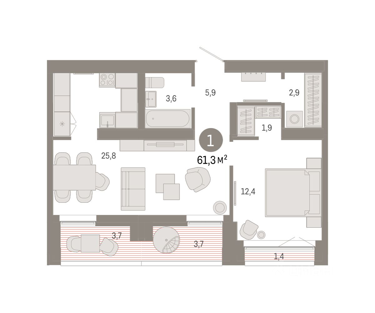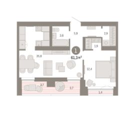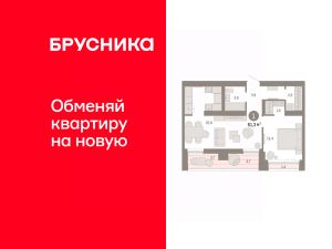 Квартира с кухней-гостиной и одной спальней в районе Шишимская горка. Особенности планировки: гардеробная, лоджия, предчистовая отделка.