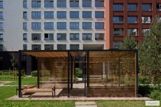 Между собой кварталы соединены широким пешеходным бульваром с игровыми и спортивными площадками, деревьями и кустарниками, привезенными из европейских питомников. Всего более 30 видов растений.