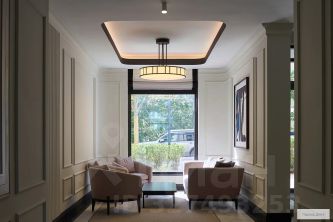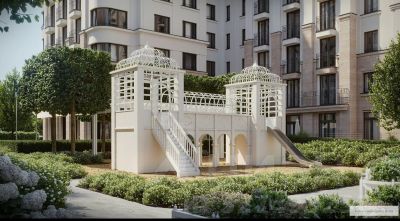 Вход во двор организован через колоннаду. Планировочно он разделён на две части. Парадный партер с большим количеством стриженых растений, фонтанами, цветущими кустарниками и более "домашняя", уютная зона, где высажены деревья и низкорослые хвойные растения, многолетники. В центре двора — две детские площадки. #zMe9UB