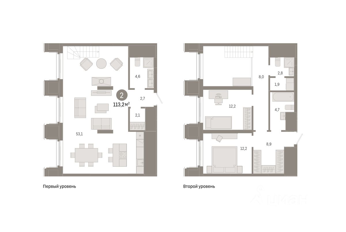 Квартира с кухней-гостиной и двумя спальнями в квартале "На Некрасова". Особенности планировки: второй санузел, второй свет, гардеробная, окно в коридоре, потолки 3 м и выше, предчистовая отделка.