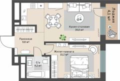 Продаётся 1-комнатная квартира в строящемся доме (Дом 2 этап 1.2), срок сдачи: I-кв. 2028, общей площадью 52.2 кв.м., на 22 этаже.