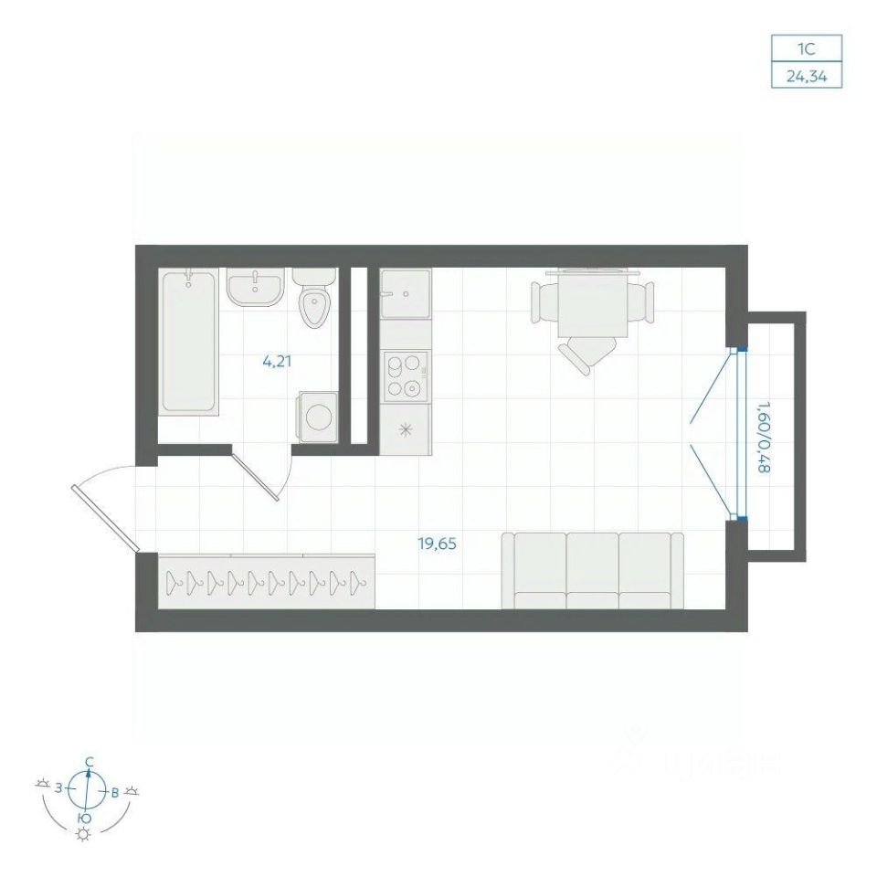 24,34 м²