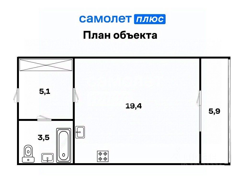 Общая площадь всех помещений с учетом лоджии 33,9 кв. метров.