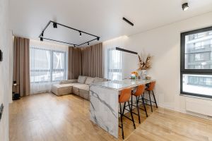 - пpоcтopнaя кухня-гостиная со столовой зоной 30 м2,