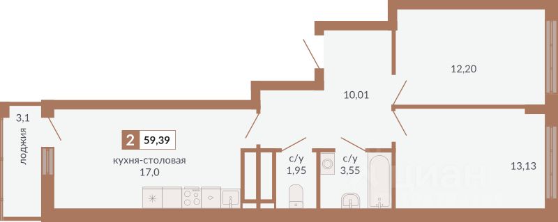 Продается Двухкомнатная квартира в новом жилом квартале "Видный" в районе ВИЗ. Квартира находится на 18 этаже, общей площадью 59.39. Строительство разделено на две очереди.
