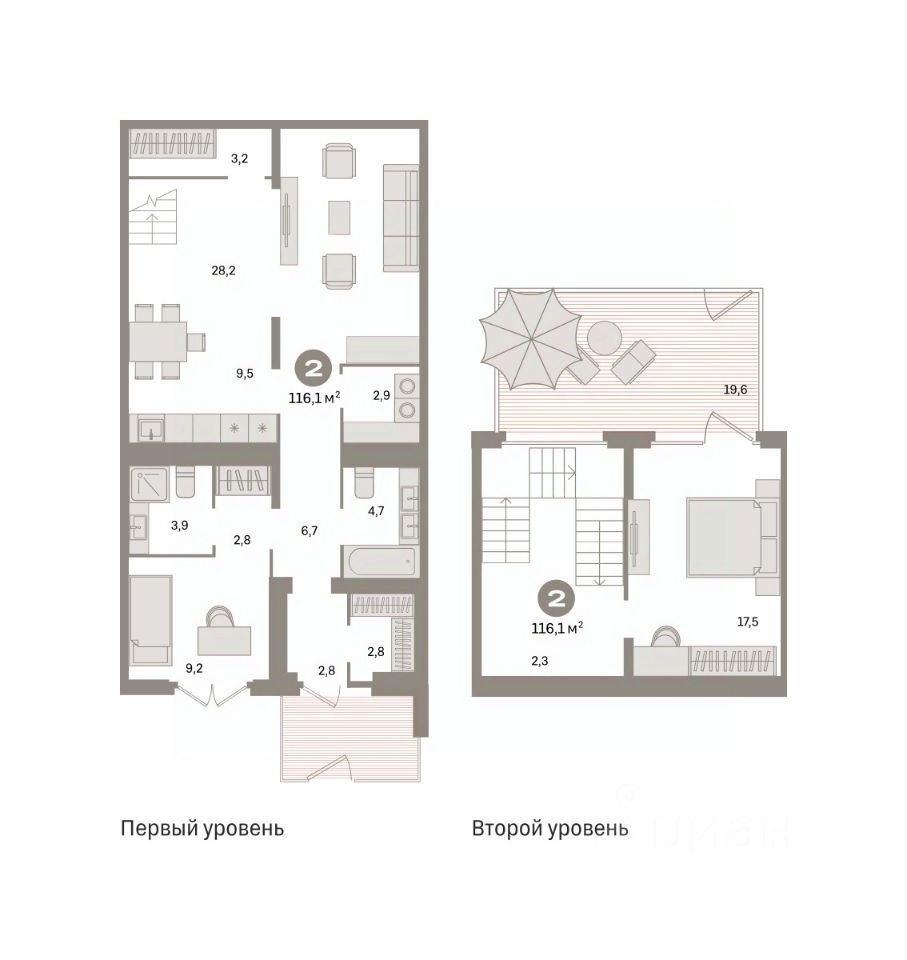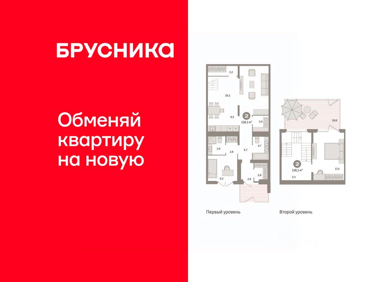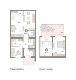 Двухуровневая квартира с кухней-гостиной и двумя спальнями в квартале "Депо". Особенности планировки: вид во двор, гардеробная, двухуровневая, мастер-спальня, окна на две стороны, отдельный вход, постирочная, потолки 3 м и выше, предчистовая отделка, разнесённые спальни, терраса.