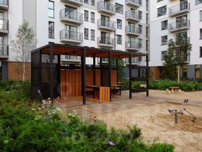 Благоустройство квартала основано на трёх принципах. Первый — особое внимание к воде. Архитекторы Брусники создадут внутри застройки систему дождевых садов, которые будут фильтровать сток (в том числе с крыш зданий) и снижать нагрузку на ливневую канализацию .